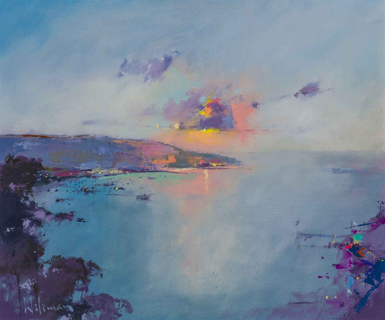 Wileman's fascination with capturing light and atmosphere is at the core of his artistic practice. Whether he is painting the golden glow of a sunset or the shimmering reflection of water, his compositions go beyond mere representation. In many of his more abstracted works, location becomes secondary to the exploration of light, color, and form. Here, the energy of a scene is distilled into bold, sweeping strokes and dynamic contrasts, creating pieces that resonate with a sense of movement and life.