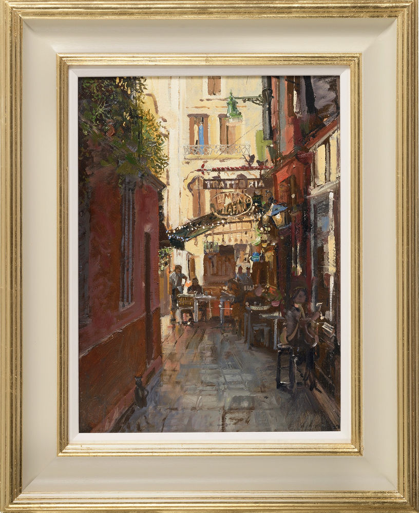 Open a larger version of the following image in a popup: Nick Grove RSMA, Trattoria down the Back Streets